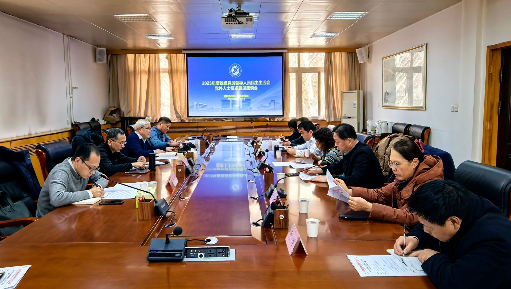 为深入贯彻中共中央纪委机关、中共中央组织部《关于开好2025年度县以上党和国家机关党员领导人员民主生活会的通知》精神,认真落实省纪委机关、省委组织部、省委教育工委有关要求,切实做好校级党员领导人员民主生活会会前征求意见工作,1月13日下午,我校在雁塔校区行政楼五楼会议室召开了2025年度校级党员领导人员民主生活会党外人士征求意见座谈会。校党委副书记张木出席会议,党委组织部有关负责同志、各民主党派主委、无党派人士代表参加座谈。会议由校党委委员、党委统战部部长吴复雷主持。