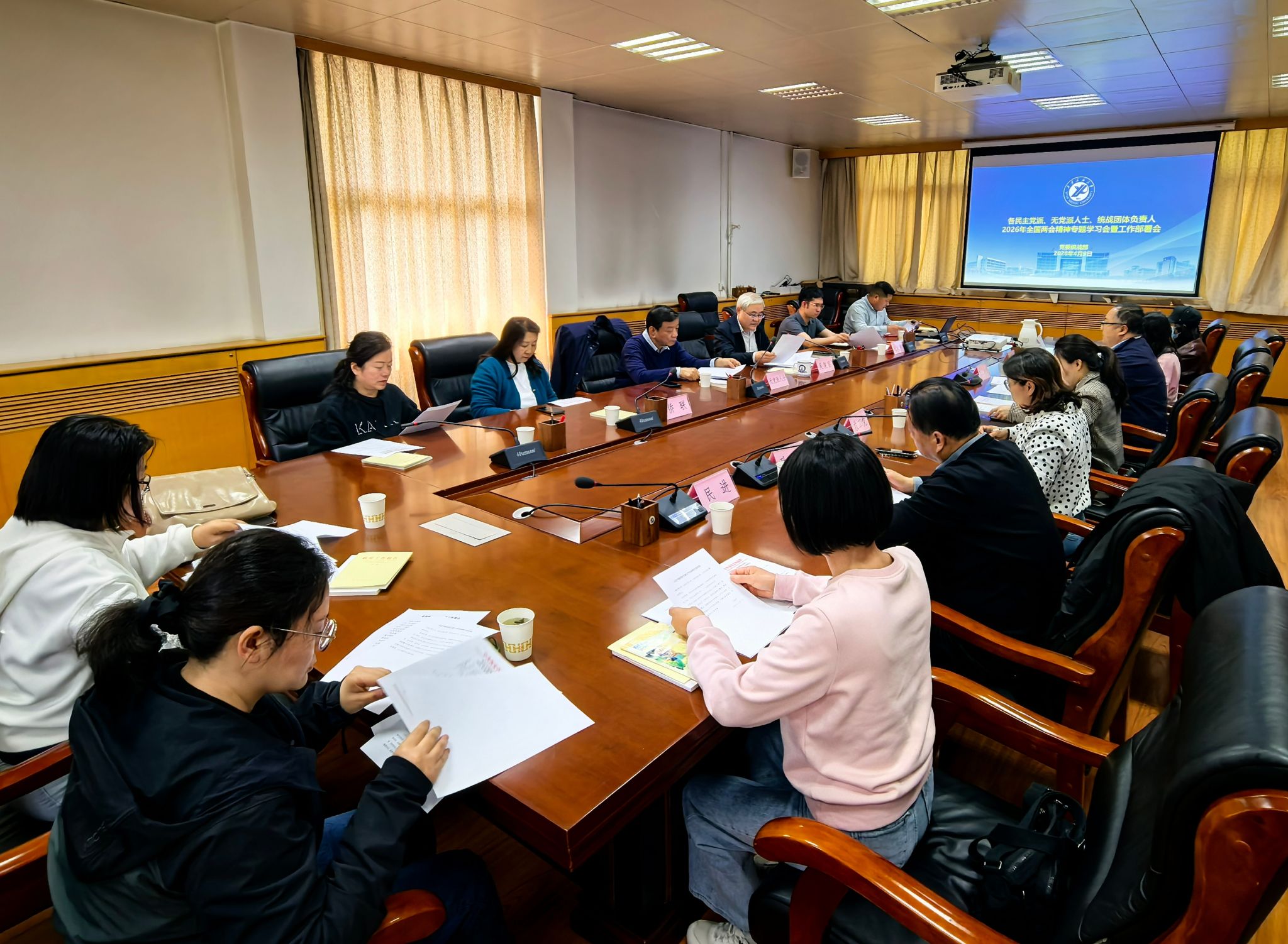 为进一步强化政治理论学习,安排部署本学期统战重点工作,学校于4月9日下午在雁塔校区行政楼五楼会议室召开2026年全国两会精神专题学习会暨工作安排部署会,各民主党派支部委员,无党派人士负责人,侨联、留联会、知联会负责人参加。会议由校党委委员、党委统战部部长吴复雷主持。